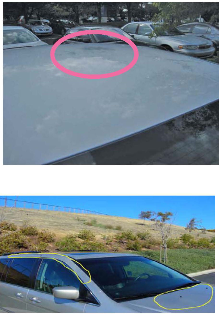 ^ Before photographing the paint defect, wash and completely dry the vehicle. Dirt, dust, and water spots visible in the photos may cover the paint defects and make them difficult to diagnose.
