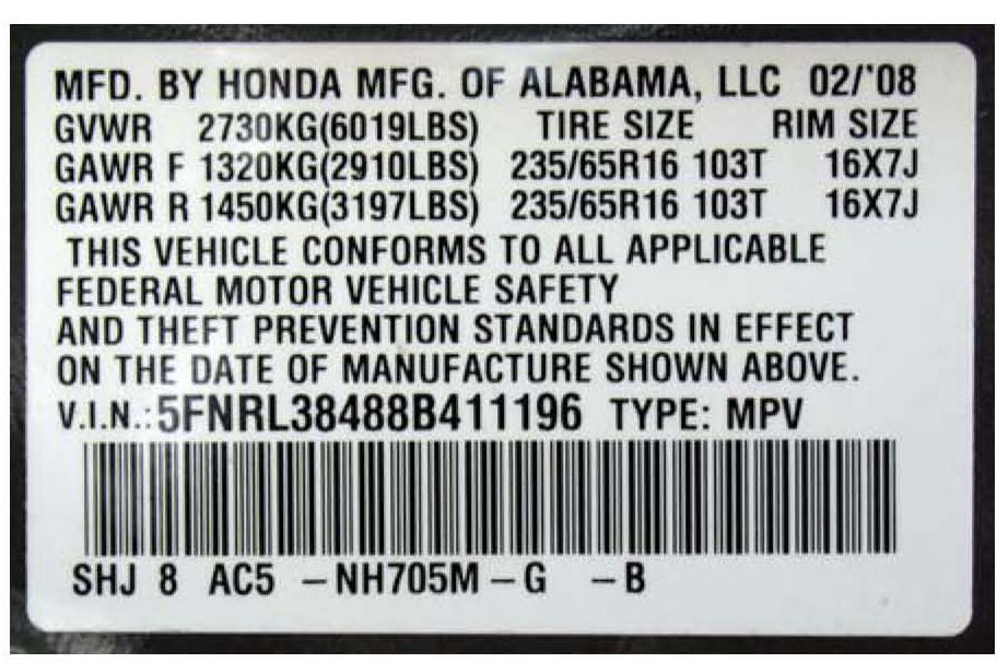 If you shoot this using your camera's flash, make sure the flash's reflection does not reduce the VIN sticker's readability.