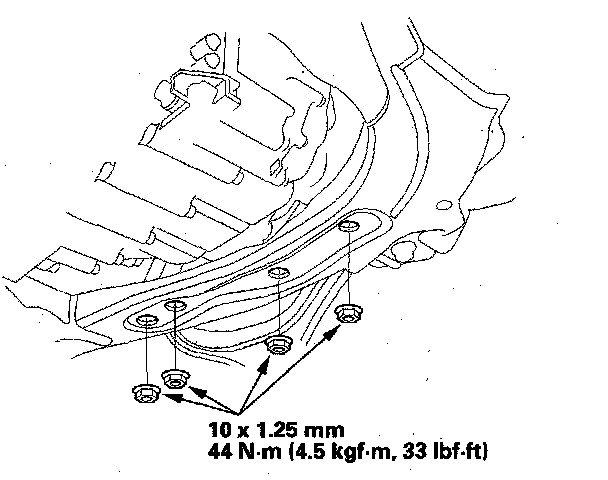 30. Install the transmission lower mount nuts.