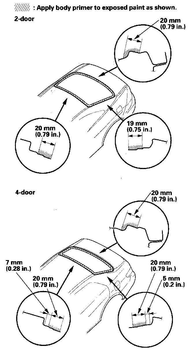 - Do NOT apply body primer to any remaining original adhesive on the flange.