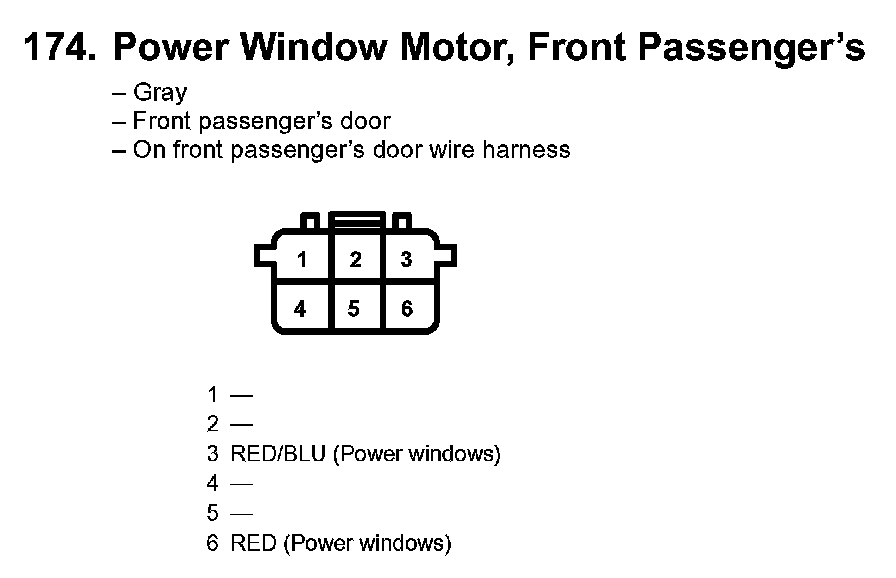 174. Power Window Motor, Front Passenger's:
