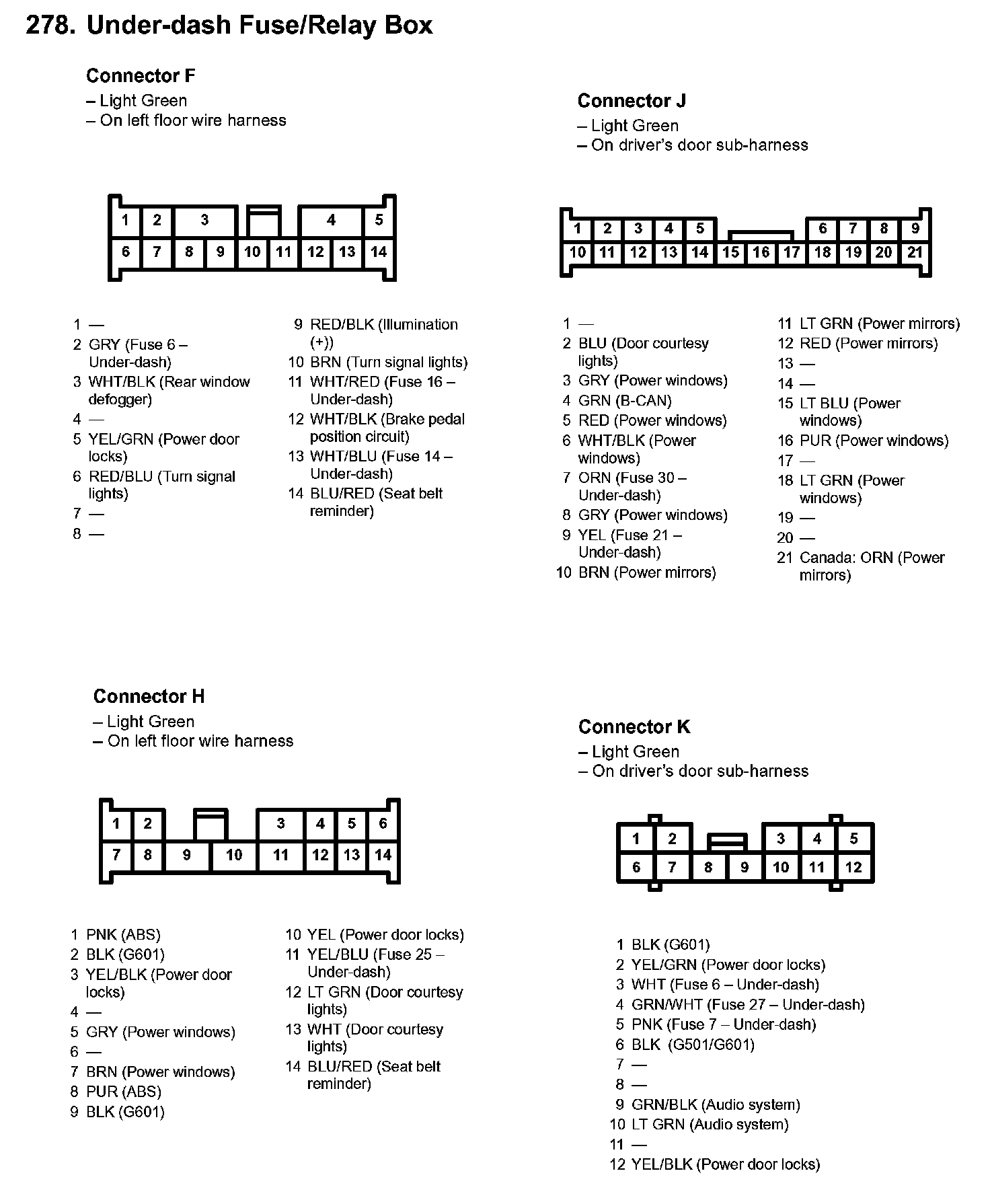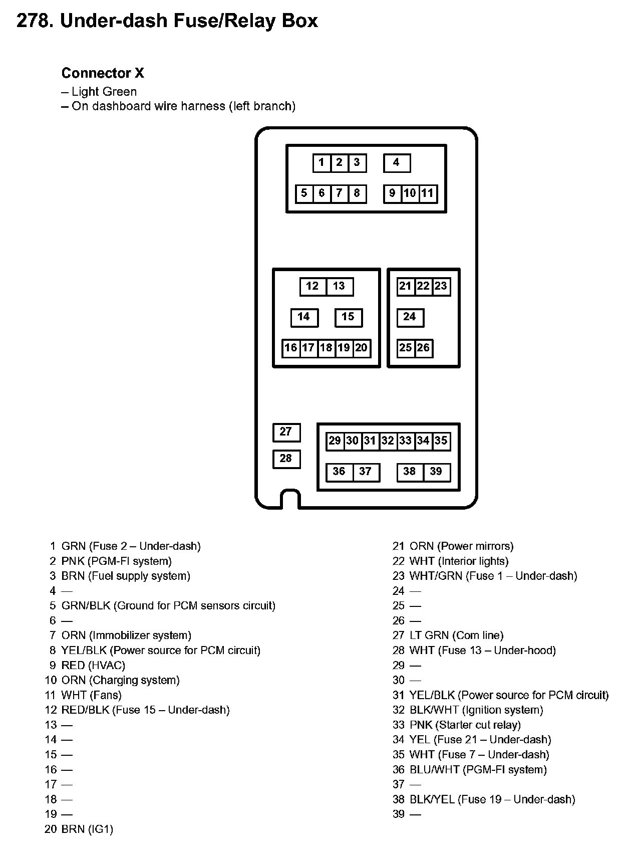 278. Under-dash Fuse/Relay Box: