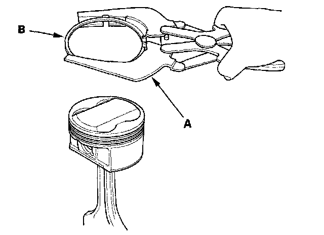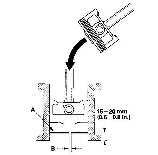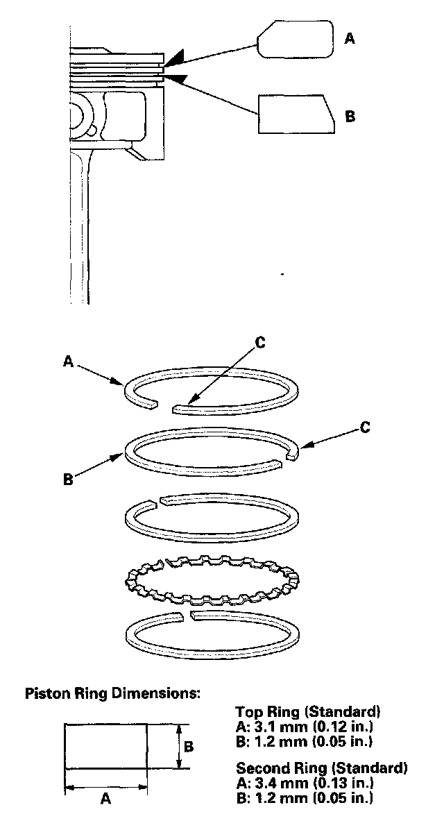 5. Measure the piston ring end-gap (B) with a feeler gauge: