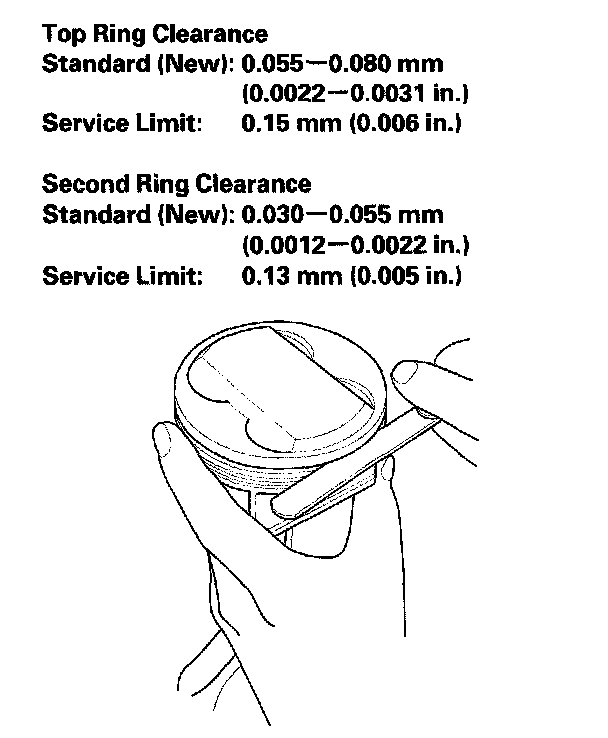 7. After installing a new set of rings, measure the ring-to-groove clearance: