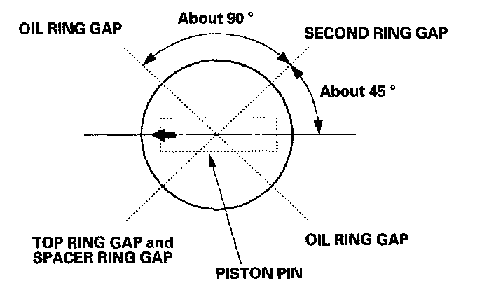 ^ If the gap is too large, recheck the cylinder bore diameter against the wear limits. If the bore is over the service limit, the engine block must be rebored.