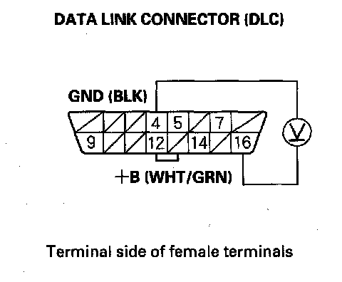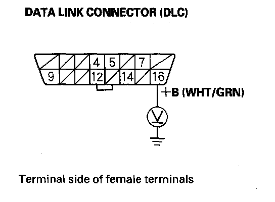 1. Measure voltage between DLC terminal No.16 and body ground.