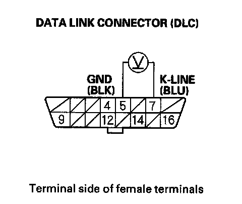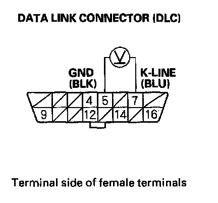 15. Measure voltage between DLC terminals No.5 and No.7.