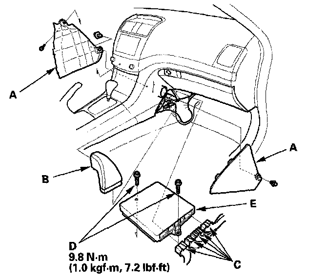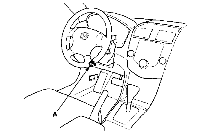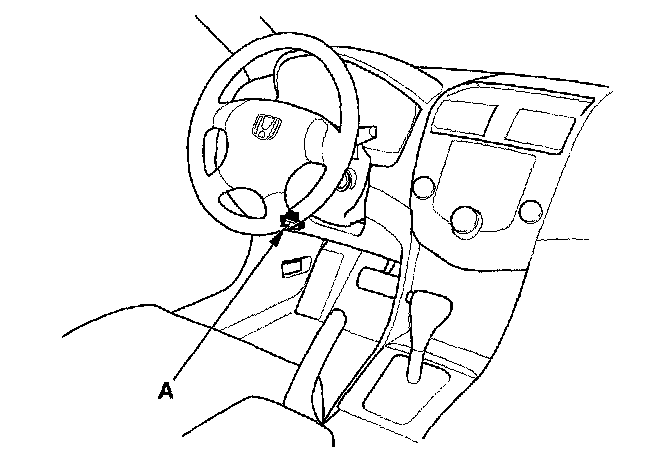2. Connect the HDS or the Honda interface module (HIM) to the data link connector (DLC) (A) located under the driver's side of the dashboard.