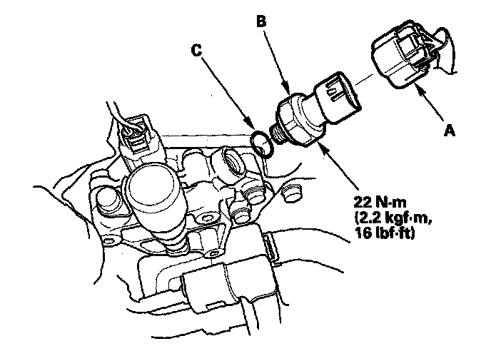 4. Install the EOP sensor in the reverse order of removal with a new O-ring (C).