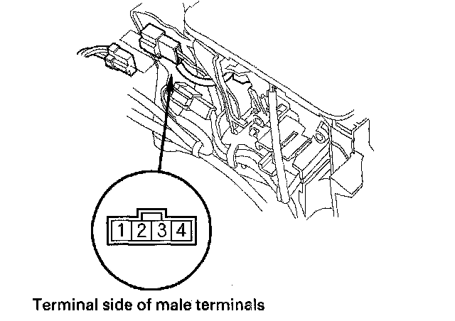 3. Shift the shift lever into the P position, then check for continuity between connector terminals No. 3 and No. 4. There should be no continuity.