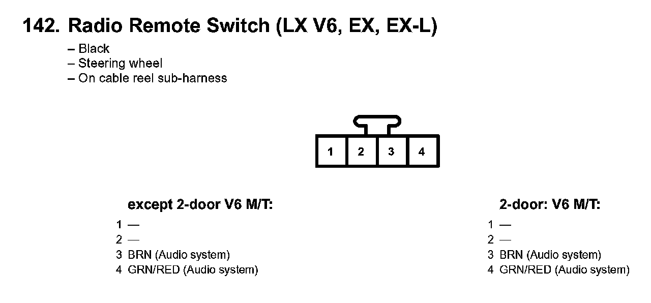 142. Radio Remote Switch (LX V6, EX, EX-L):