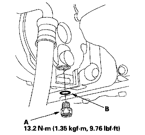 2. Remove the relief valve (A) and the O-ring (B). Plug the opening to keep foreign matter from entering the system and the compressor oil from running out.