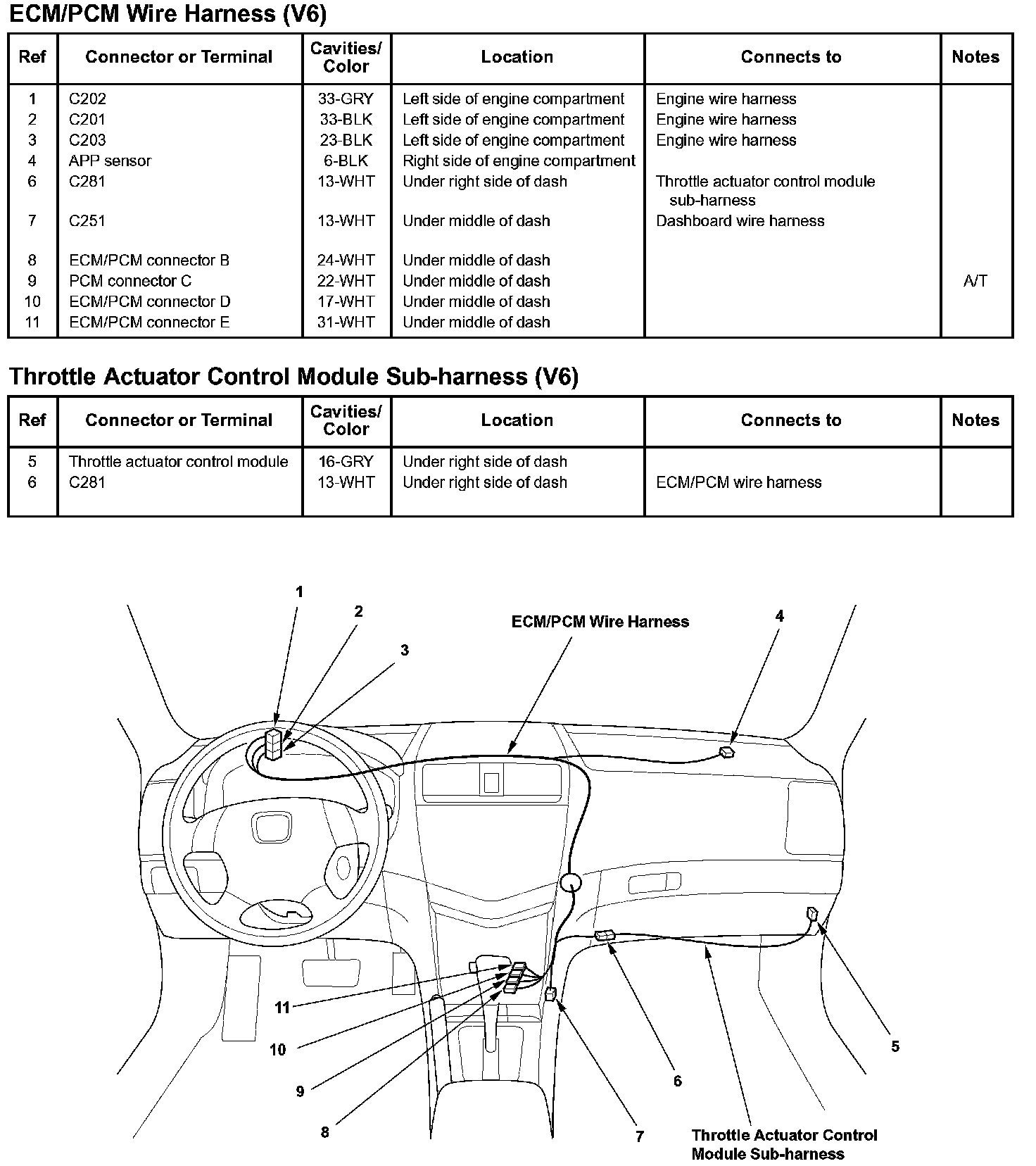 ECM/PCM Wire Harness/ Throttle Actuator Control Module Sub-harness: