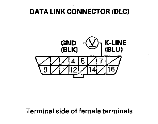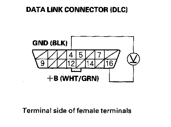 15. Measure voltage between DLC terminals No.5 and No.7.