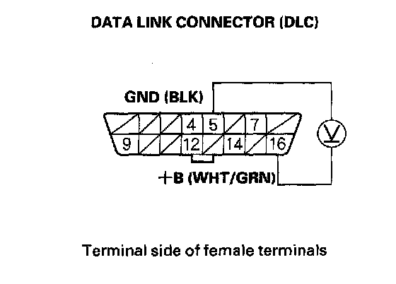3. Measure voltage between DLC terminals No.5 and No.16.