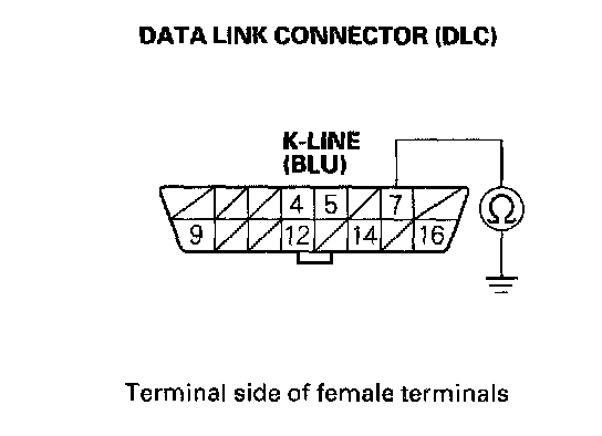 9. Check for continuity between DLC terminal No.7 and body ground.
