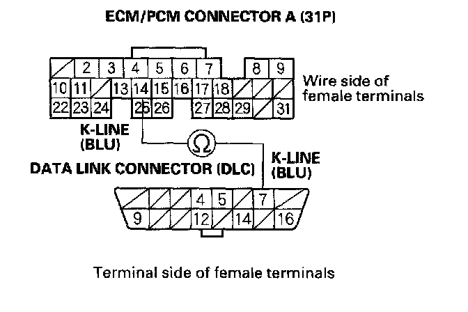 NO - Repair open in the wire between DLC terminal No.7 and the ECM/PCM (A14). After repairing the wire, check for Temporary DTCs or DTCs with the HDS and go to the indicated DTC's Troubleshooting.