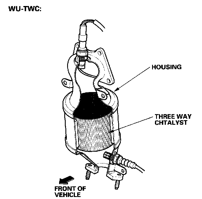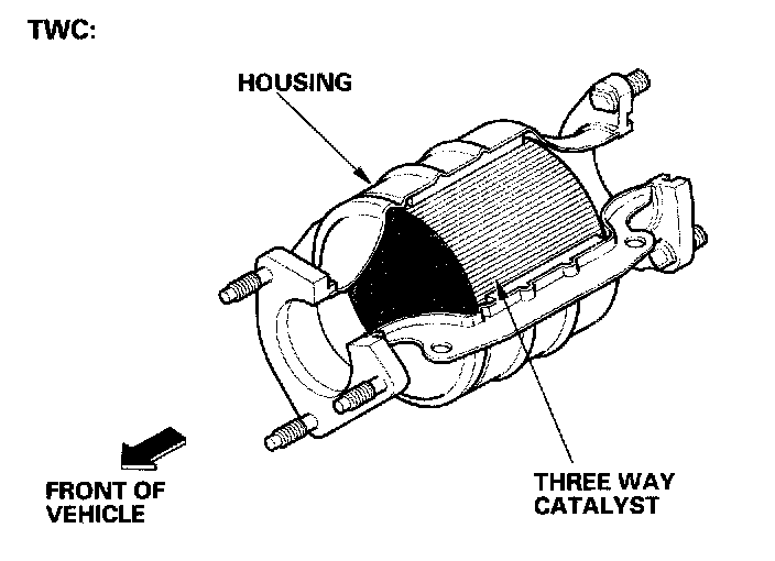 The WU-TWC/TWC converts hydrocarbons (HC), carbon monoxide (CO), and oxides of nitrogen (NOx) in the exhaust gas to carbon dioxide (CO2), nitrogen (N2), and water vapor.