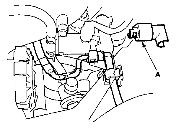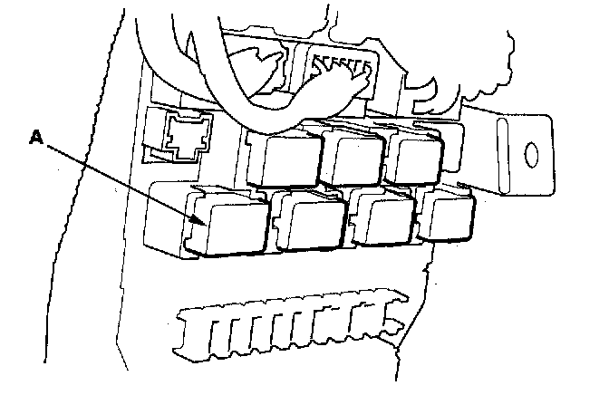 2. Remove the left kick panel, then remove PGM-FI main relay 2 (FUEL PUMP) (A) from the under-dash fuse/relay box.