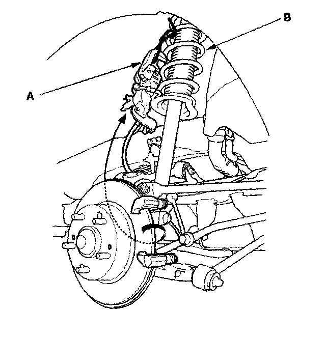 11. Hook the caliper body (A) onto the damper spring (B)