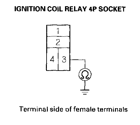 5. Check for continuity between ignition coil relay 4P socket terminal No. 3 and body ground.