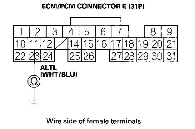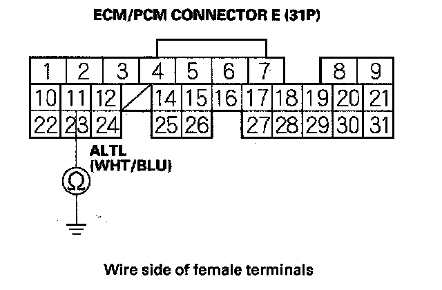 10. Check for continuity between ECM/PCM connector terminal E11 and body ground.