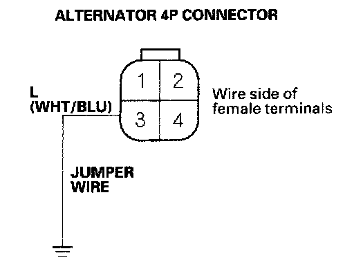 14. Connect alternator 4P connector terminal No.3 and body ground with a jumper wire.