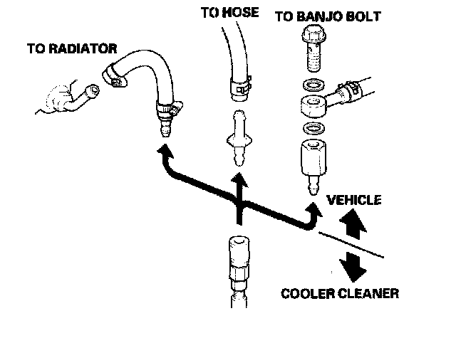 4. Select the appropriate pair of fittings, and attach them to the radiator, to the hoses, or to the banjo bolts for flow through the ATF cooler cleaner.