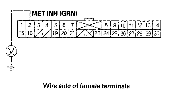 5. Measure the voltage between PCM connector terminal C21 and body ground.