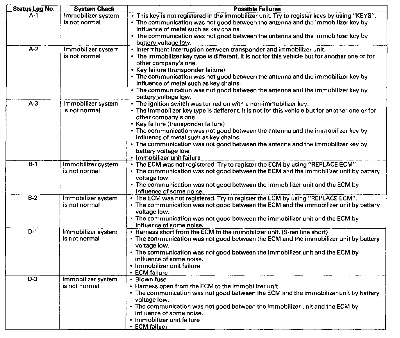 Immobilizer System Check