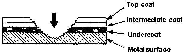 Damage to undercoat, intermediate coat and top coat: