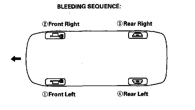 5. Repeat the procedure for each wheel in the sequence shown until air bubbles no longer appear in the fluid.