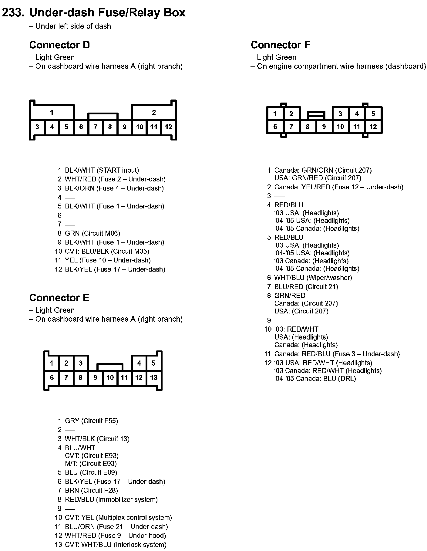 233. Under-dash Fuse/Relay Box Part 1: