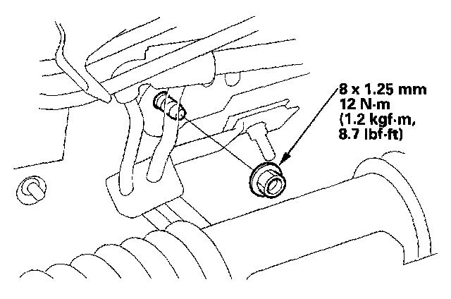 8. Remove the mounting nut from the heater unit. Take care not to damage or bend the fuel lines and the brake lines, etc.
