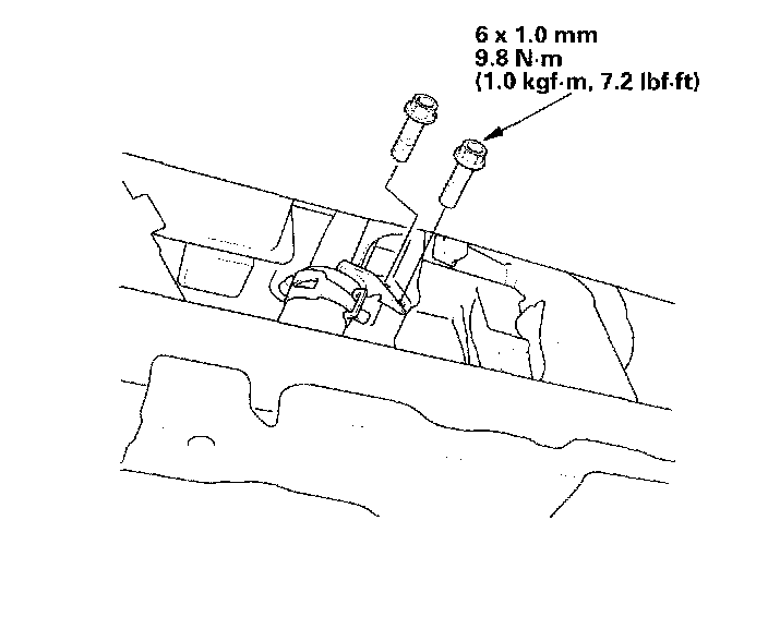 7. Tighten the two bolts securing the transmission.
