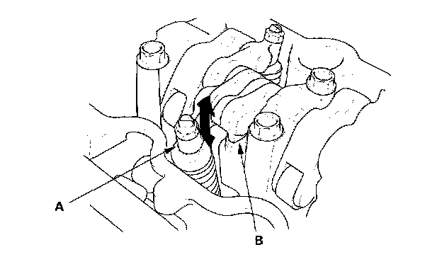 3. Move the primary rocker arms (A) for the No. 3 cylinder. The primary rocker arm and secondary rocker arm (B) should move together.