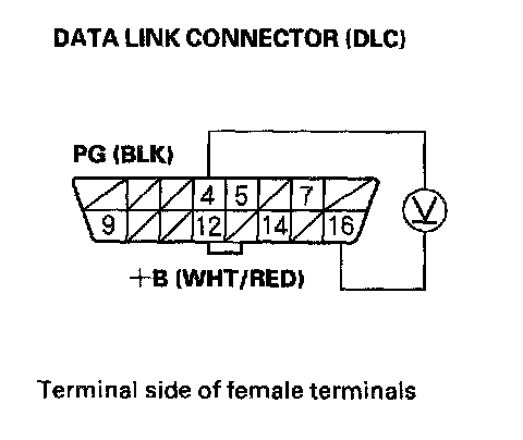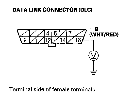1. Measure voltage between DLC terminal No.16 and body ground.