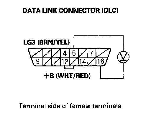 3. Measure voltage between DLC terminals No.5 and No.16.