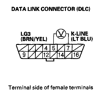 15. Measure voltage between DLC terminals No.5 and No.7.