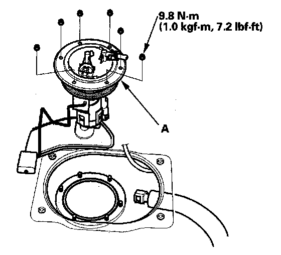 7. Remove the fuel pump/fuel gauge sending unit (A).