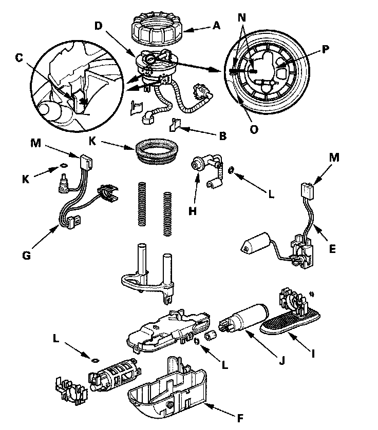 - When installing the fuel tank unit, align the marks (N) on the fuel tank (0) and the fuel tank unit (P).