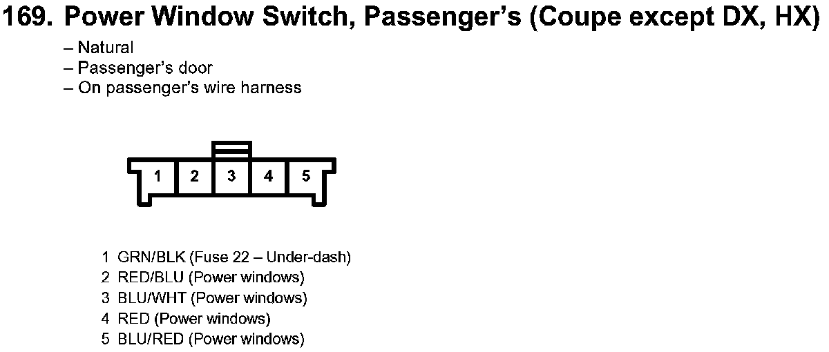 169. Power Window Switch, Passenger's (Coupe Except DX, HX):