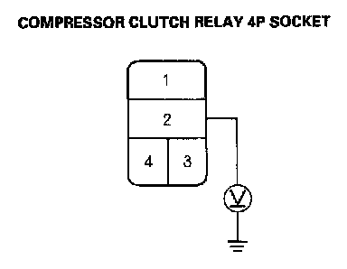 4. Measure the voltage between the No.2 terminal of the compressor clutch relay 4P socket and body ground.