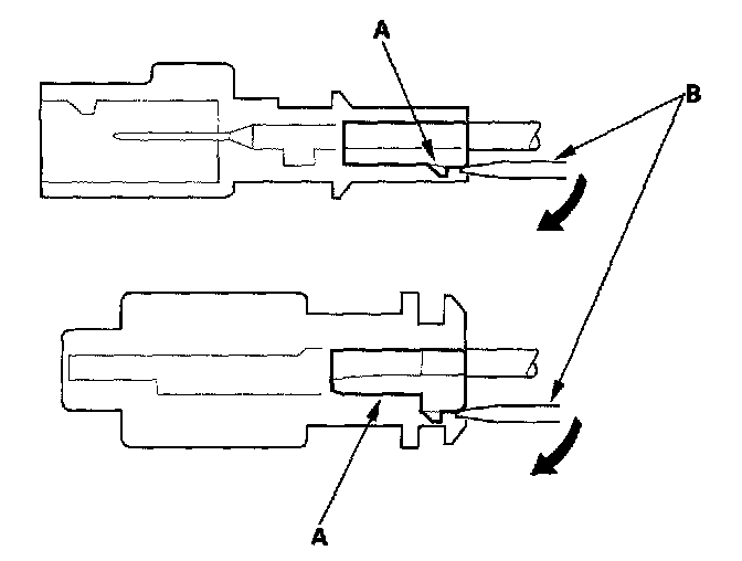 Backprobing Spring-loaded Lock ConnectorsWhen checking voltage or resistance on this type of connector the first time, you must remove the retainer to insert the tester probe from the wire side.