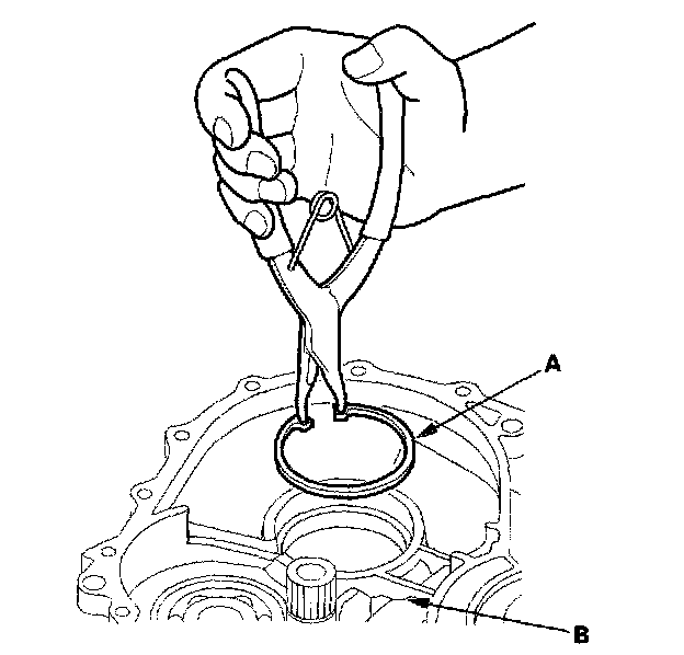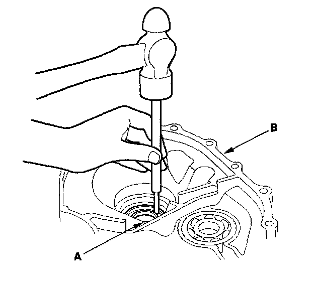 1. Remove the oil seal (A) from the transmission housing (B).