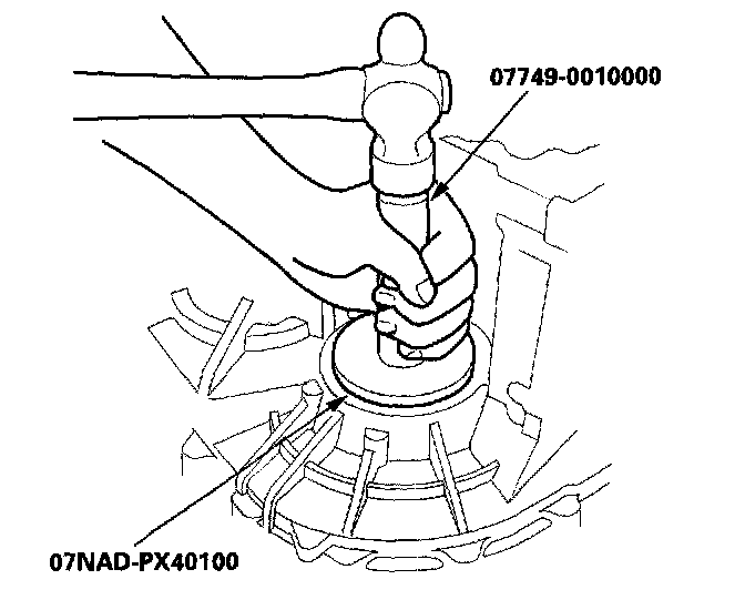 3. Install the oil seal in the transmission housing with the special tools.