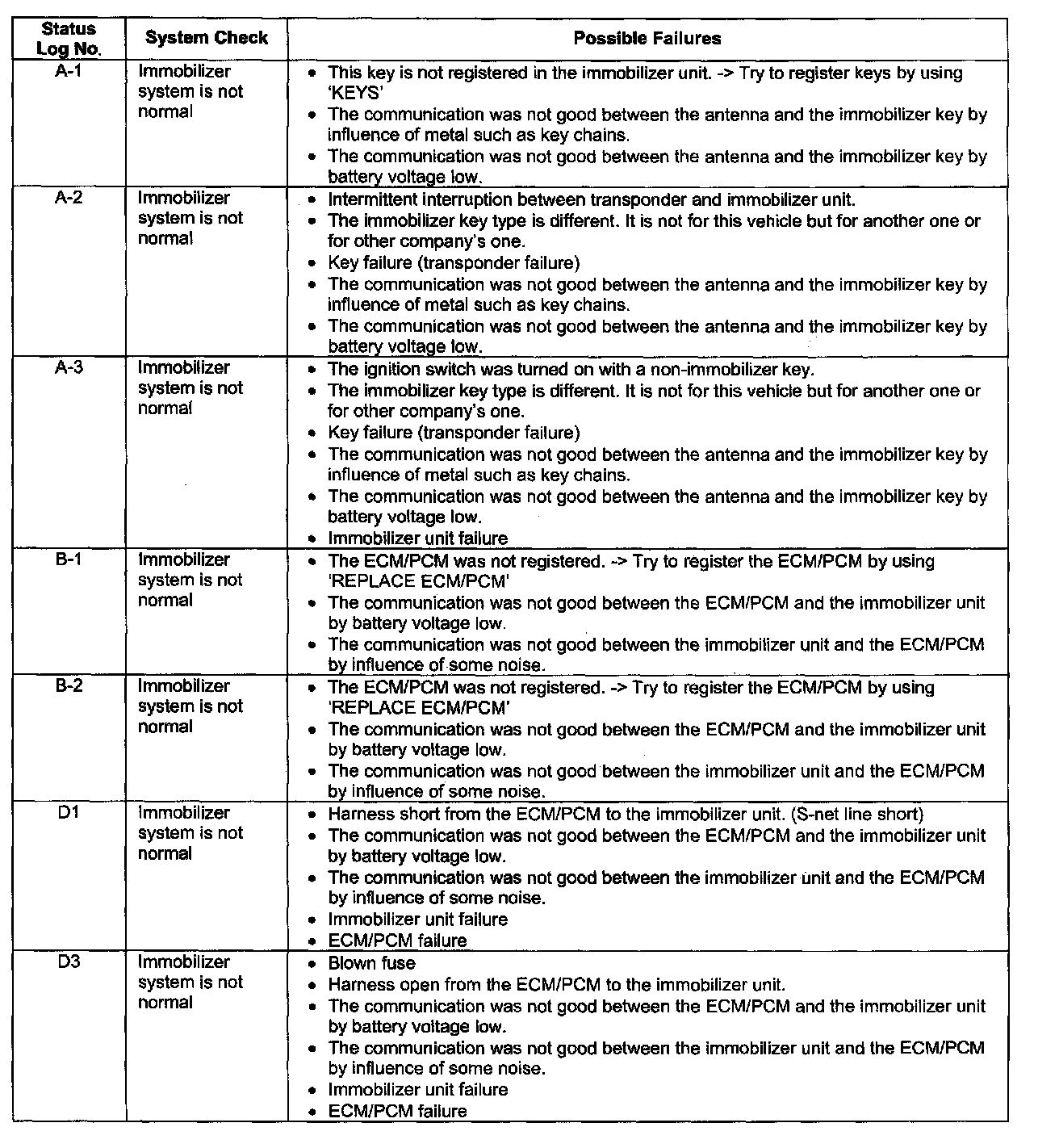Immobilizer System Check