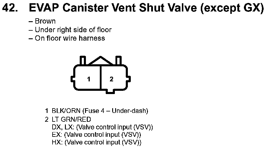 42. EVAP Canister Vent Shut Valve (except GX):