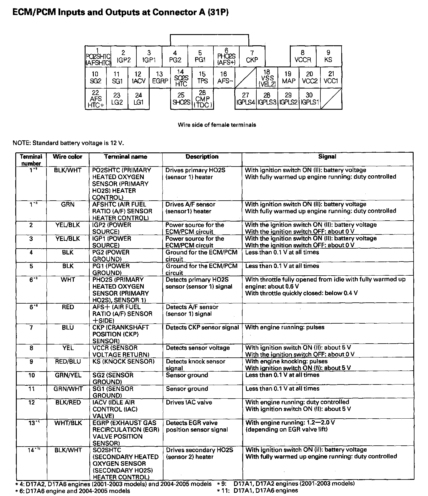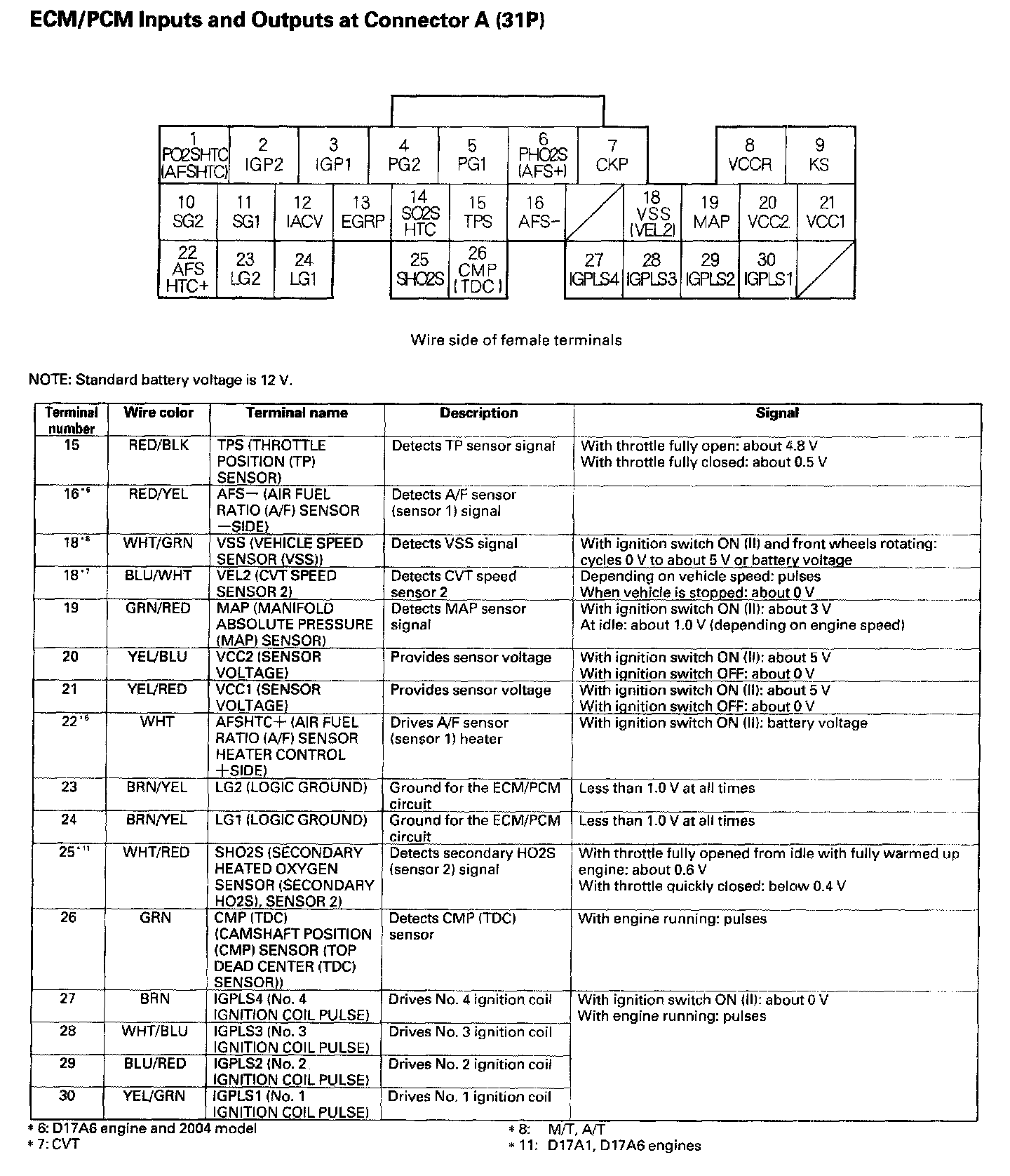 ECM/PCM Inputs And Outputs At Connector A (31P) Part 1: