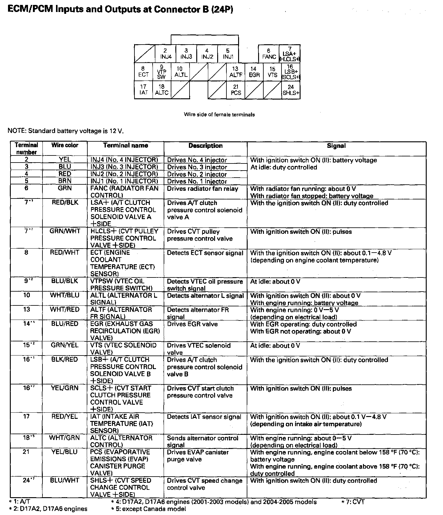 ECM/PCM Inputs And Outputs At Connector B (24P):